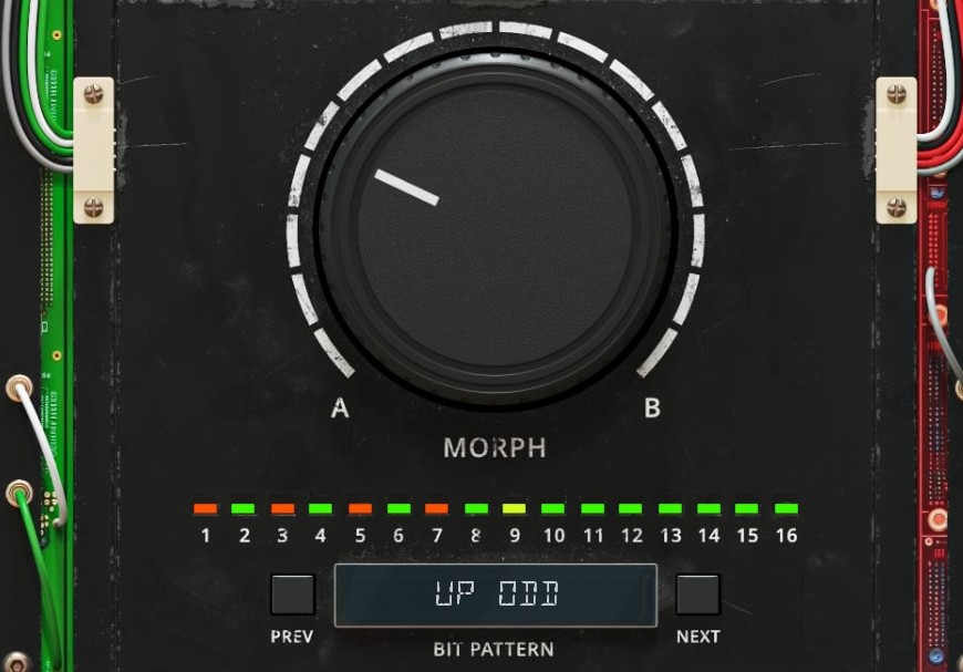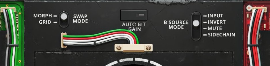 SWAP MODE - selects how the bits will be swapped. MORPH offers a knob that continuously crossfades smoothly through all the bits; this mode is great for transitions and automating. GRID allows each bit to be independently swapped from A to B; this mode is good for setting a custom bit pattern.