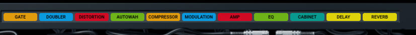 Drag and drop the components to put them in desired position in the effect chain. Do not hesitate to experiment and put the components where they wouldn't belong in the real world. Double-clicking the components' rectangles bypasses/unbypasses the components.