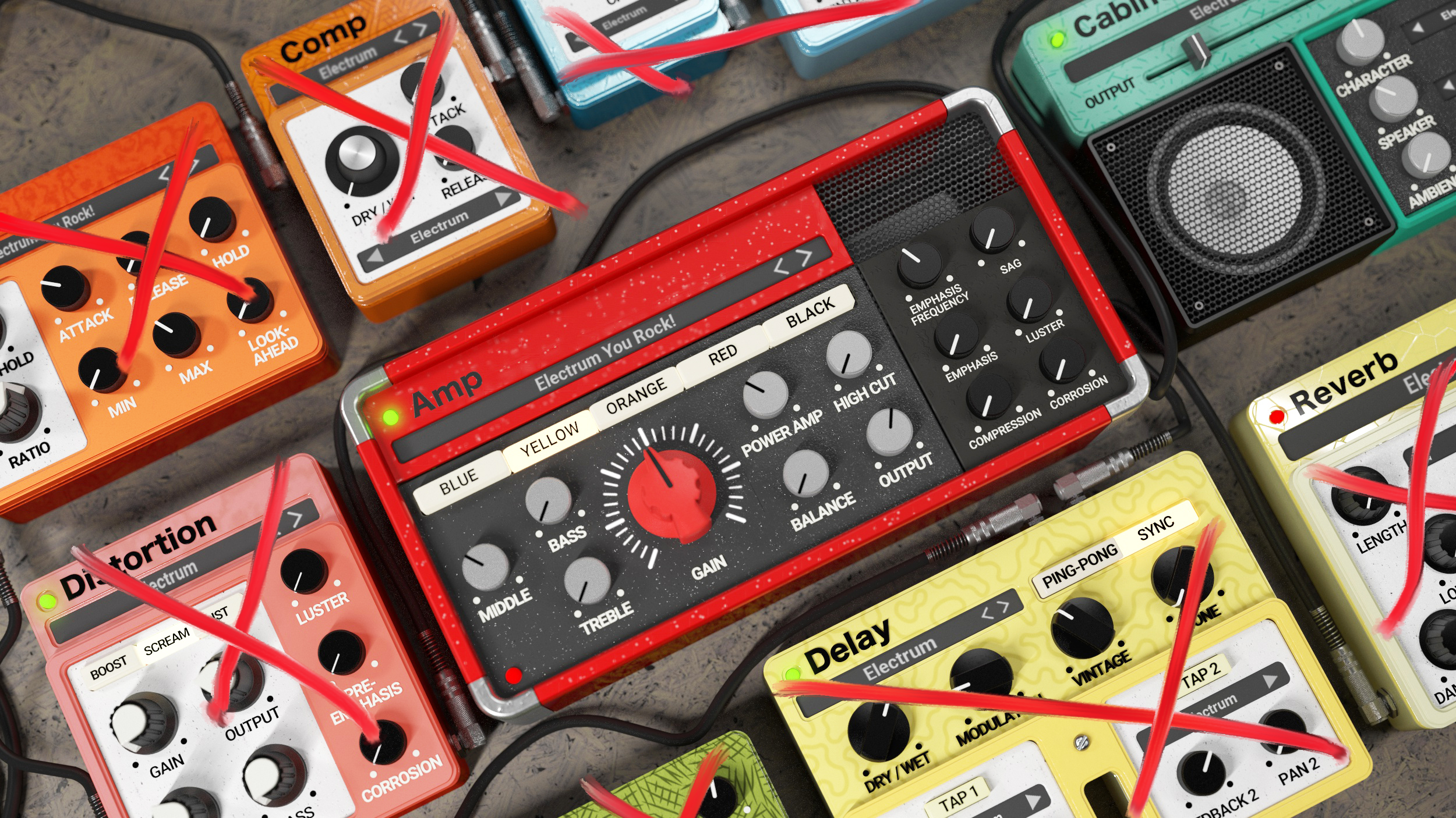 Electrum has everything you need to get any great guitar tone all on one page. No fumbling with multiple menus. It's all right there to help you dial in the sound that you want. The GUI is super cool and is a guitarist's dream to get ultra-realistic killer guitar tones and a pleather of great effects too My new amp plug-in is Electrum !!!!