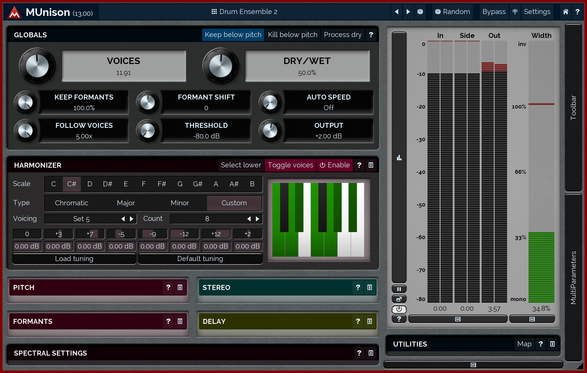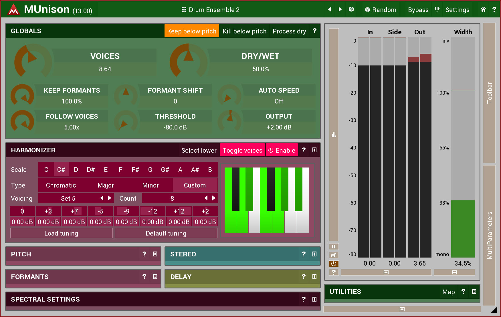 Aside from fixed pitch intervals, you may create ensembles based on harmonies according to scales of your choice (Cmaj, Dmin). The result is extremely musical.