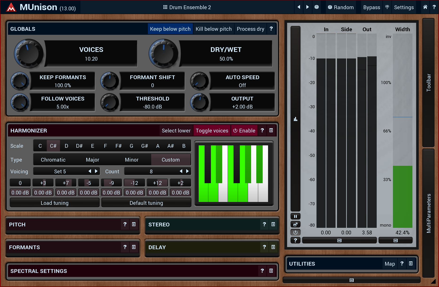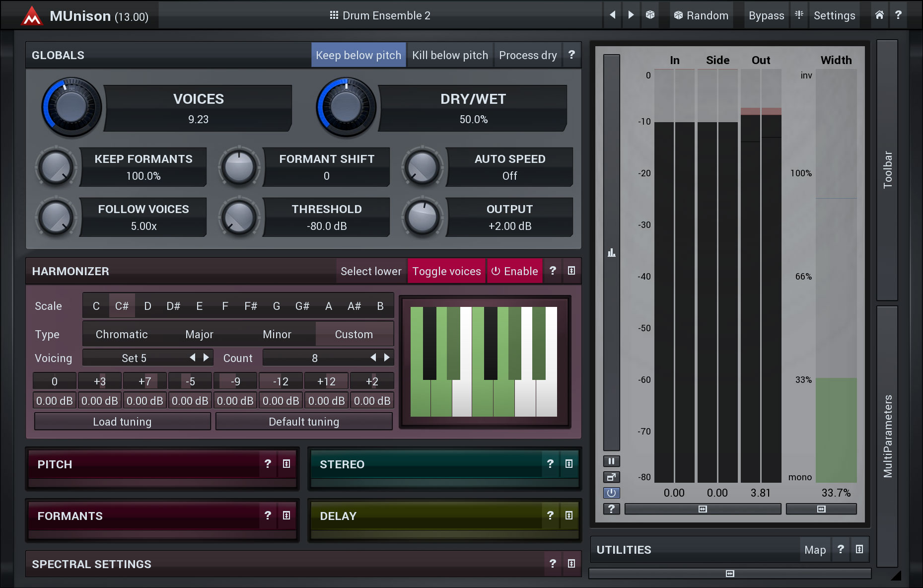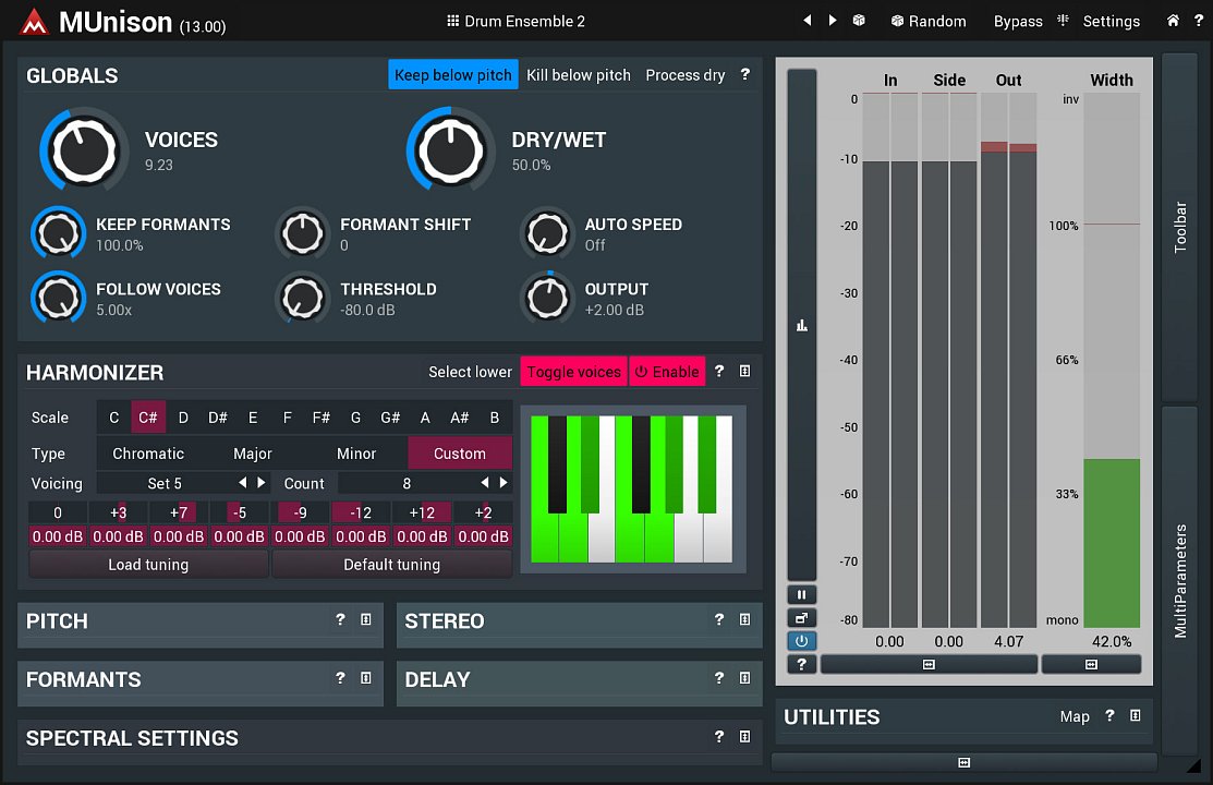 MUnison is a unique combination of doubler/unison and smart harmonizer. It lets your vocals sound like a choir with automatically scaled harmonies and your instruments like an orchestra. MUnison produces the classic double-tracking effect and much more...