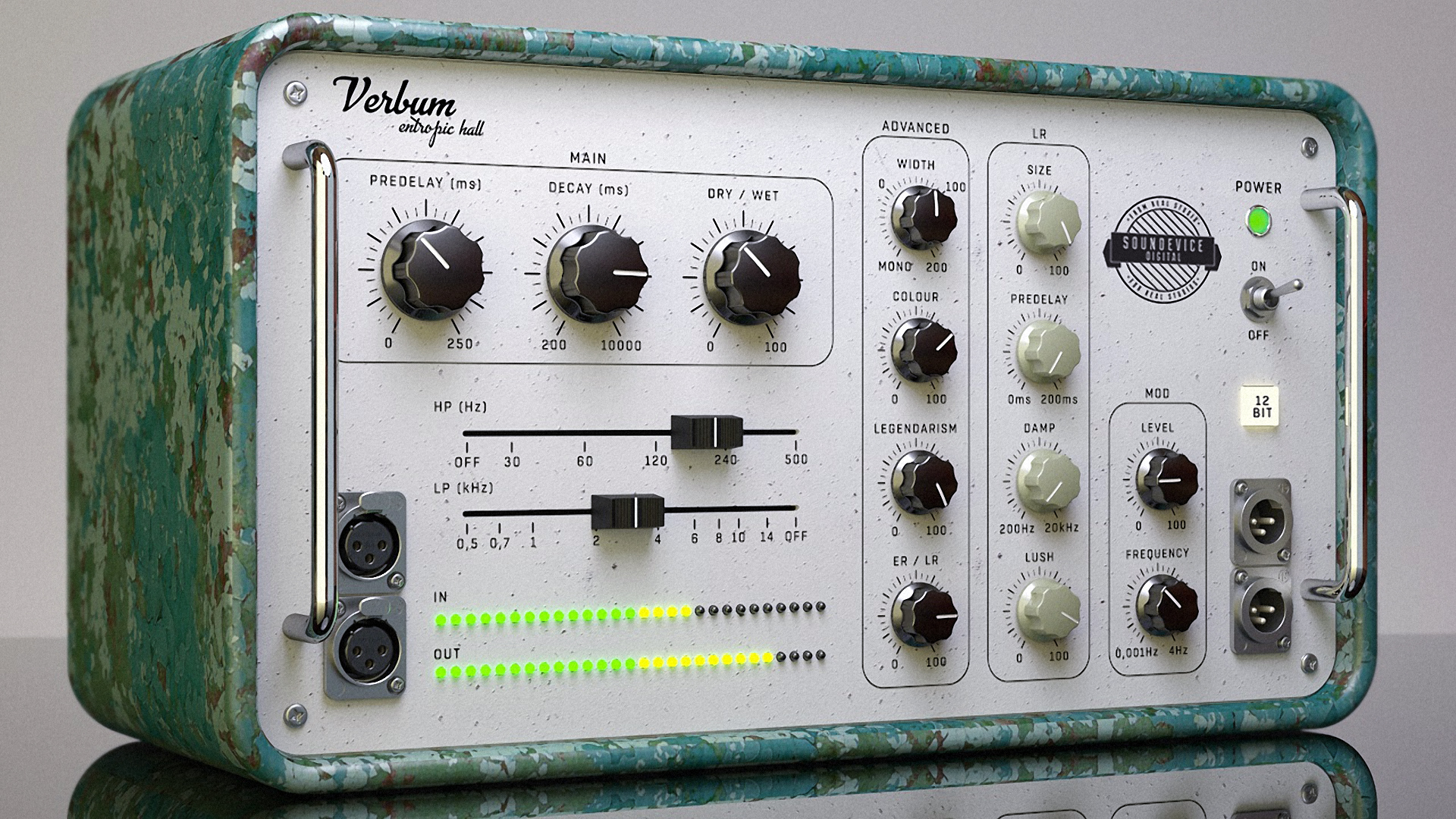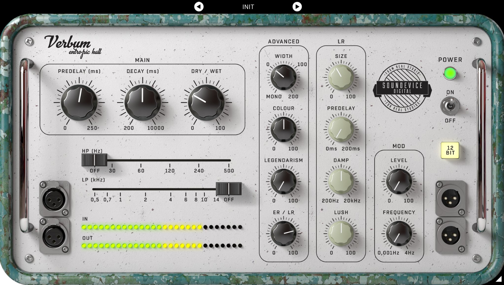 To get the authentic feel of the vintage reverb machines, Verbum is equipped with a "12BIT" button which triggers the simulation of old AD/DA converters giving your sound pleasant and interesting grain.
